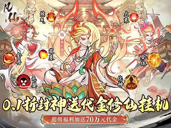 《凡仙》是一款以封神榜神话史诗为世界观基底的玄幻挂机卡牌游戏。玩家将踏入一个神魔纷争、机缘遍地的洪荒世界,从一介凡人开始,通过修炼、战斗与历练,体本验从炼气、筑基直至飞升成仙,乃至问鼎道祖的完整修仙之路。游戏采用水墨国风美术,营造出一个写意又磅礴的修仙大世界。