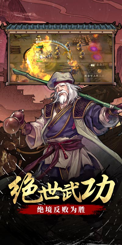 《智夺军旗》集结经典武侠三部曲百位传奇侠客!经典剧情还原,新派国风演绎。尽情收集养成大侠,仗剑行走武侠江湖吧! 【天地焕然 江湖新生】 主页界面焕然一新,考究细节绘制高颜值侠客形象。风云变化天气系统,身临其境武侠世界,新派国风江湖尽收眼底! 【武林豪侠 跨时空齐聚】 邂逅郭大侠,蓉儿,杨大侠,神仙姐姐,无忌,张三丰,小虾米,探花公子等等天下群侠! 【全新玩法 武侠组队】 多人同屏,紧张刺激!创新塔防组队副本,多名玩家实时互动共同抵御敌人进攻,巧用策略与全服大侠们一争高下! 【全员升星 蓝卡逆袭】 江湖无弱者,全员皆豪侠。突破品质限制,全员侠客均能升星,部分副本蓝卡紫卡缺一不可。融合Roguelike养成体系,培养你喜欢的专属侠客。 【养卡不累 福利翻倍】 放置挂机轻松护肝,一键获取丰厚养成资源,培养侠客不再难!随玩随停,告别复杂日常任务!
