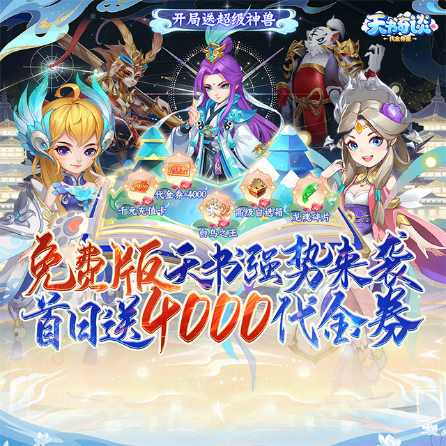 ★每日免费送1000代金券 ★邮件豪礼1:代金券*648、碎片自选箱*10、背饰晋升卡*1、高级材料自选箱Ⅰ*1 ★邮件豪礼2:神兽青眸金雷虎碎片*80 ★邮件豪礼3:珍惜材料自选箱Ⅰ*5、碎片自选箱*50 ★邮件豪礼4:代金券*1000、高级自选箱*5、卜签*50 ★邮件豪礼5:代金券*1000、龙魂碎片*50、藏宝图*10 ★邮件豪礼6:坐骑-白鸟之王 ★邮件豪礼7:代金券礼盒*1 ★进游送5000元充值卡、伙伴碎片自选箱、高级技能书锦囊,神兽二选一(朱雀和青眸金雷虎)、神兽之魂*30、重生露*1、延寿露*15 ★在线免费抽充值卡、签到送海量充值卡,每日活跃送充值卡