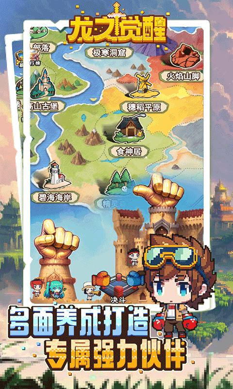 《龙之觉醒》是一款融合冒险+卡牌+放置模拟经营类手游。在游戏中扮演冒险者通过经营自己的领地,获取资源成长,决战游戏中的大魔王。在这个过程中,你可以认识来不同异世界的英雄人物,有大唐过来的四师徒,有动漫世界过来的英雄王和篮球天才,有西方神界过来的死神。快来进入游戏与英雄伙伴们完善了领地的建设,建立起了属于自己的王国吧!