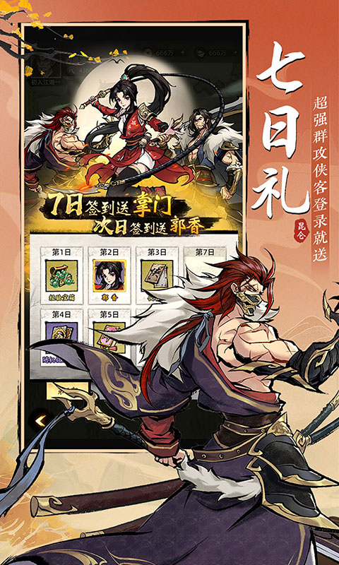 【游戏介绍】 《九州江湖情》是一款武侠风放置卡牌游戏。 南宋末年,宋蒙连年大战之下,江湖势力强势崛起,纷纷承担起属于自己的历史使命。你出身边陲小门派,师傅出走,师弟也不怎么靠谱,如何在这乱世闯出一片天,谱写一曲义薄云天的大侠传奇,或扮演逆势崛起的魔教枭雄? 在《九州江湖情》中,你将亲手通过一个个选择,影响你的一步步江湖路,最终打造一个只属于你的武林! 【游戏特色】: 1、连登七日送超强群攻侠客 2、领百抽礼盒助力欧皇开局 3、十二门派百种阵容随心搭 4、放置挂机躺平习武林神功 【游戏玩法】 PVE:主线游历、摘星楼、演武场、只影天涯、神州探索等 PVP:巅峰演武、绿林豪杰、世界BOSS、塞北争霸等